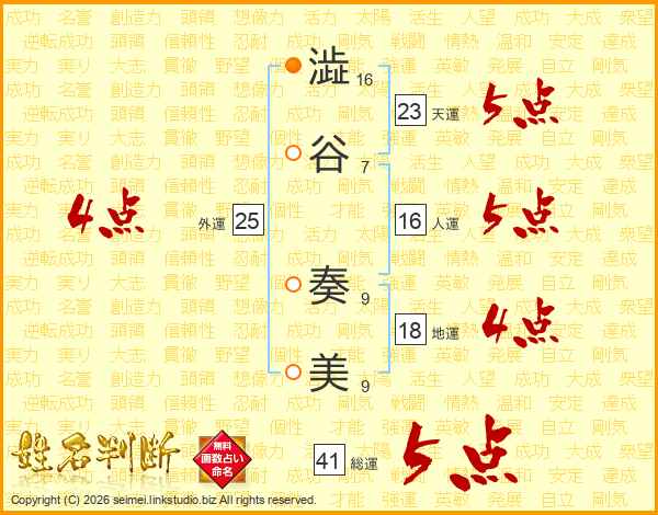 澁谷奏美さんの総運は41画の5点!