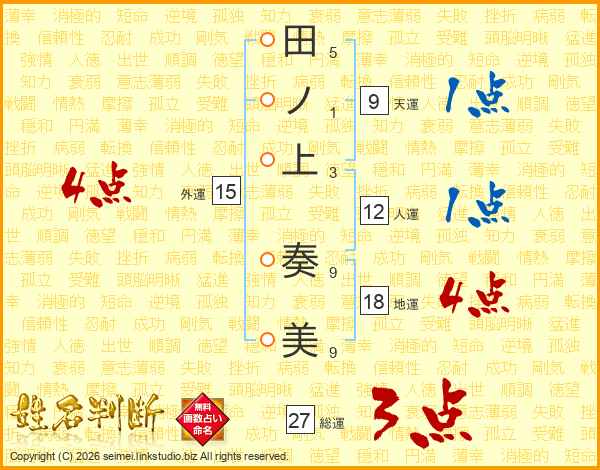 田ノ上奏美さんの総運は27画の3点!