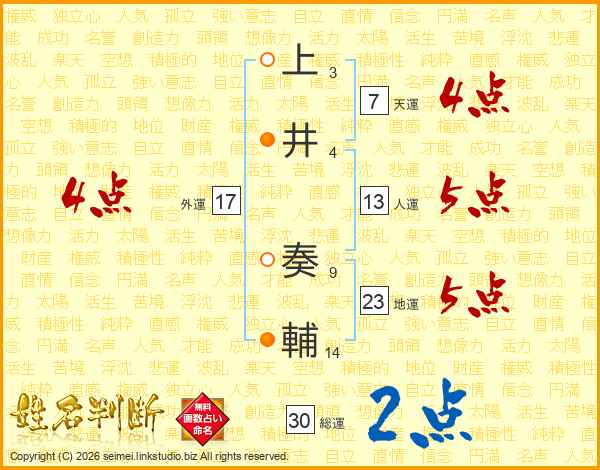 上井奏輔さんの総運は30画の2点!