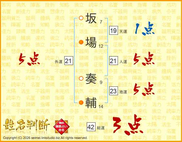 坂場奏輔さんの人運は21画の5点!