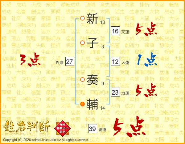 新子奏輔さんの総運は39画の5点!