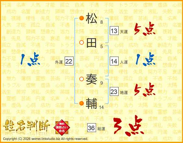 松田奏輔さんの総運は36画の3点!