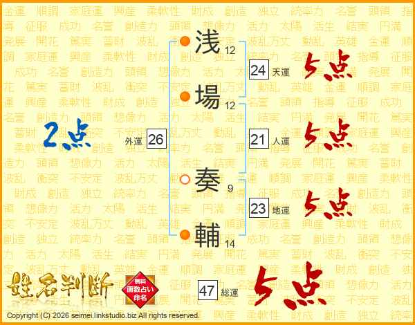 浅場奏輔さんの総運は47画の5点!