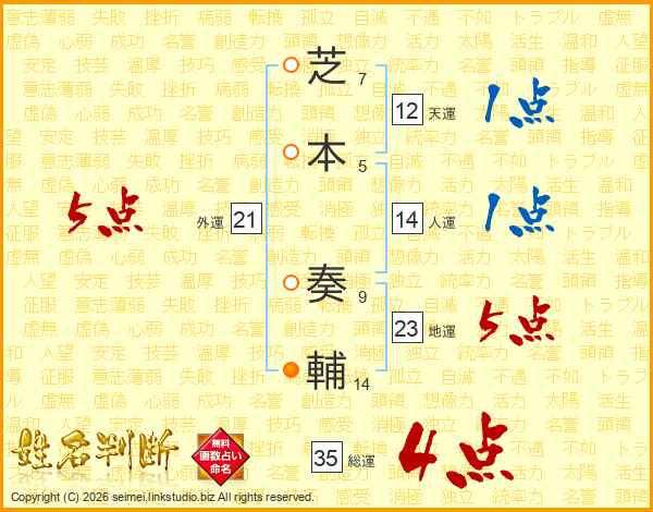 芝(7画)本(5画) 奏(9画)輔(14画)