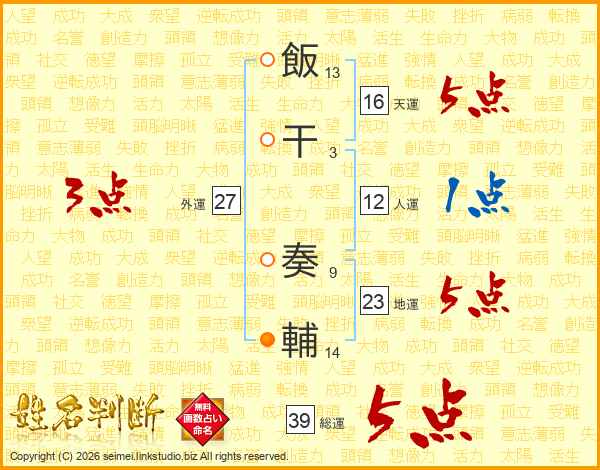 飯(13画)干(3画) 奏(9画)輔(14画)