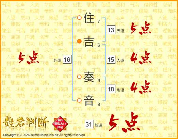 住吉奏音さんの総運は31画の5点!