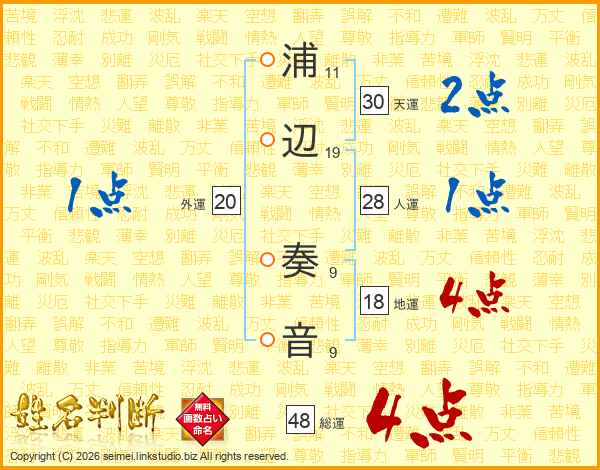 浦辺奏音さんの総運は48画の4点!
