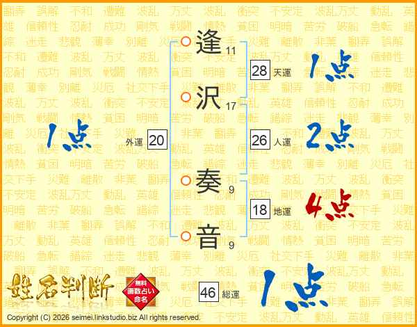 逢沢奏音さんの総運は46画の1点!