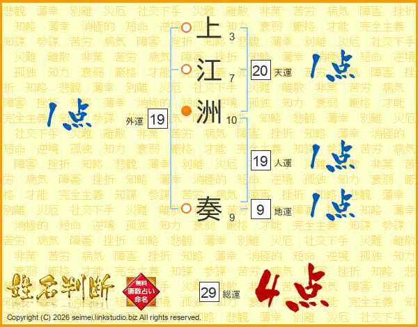 上江洲奏さんの総運は29画の4点!