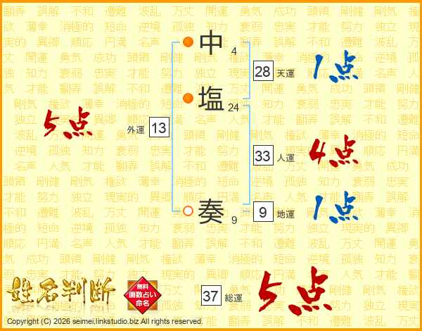 中塩奏さんの人運は33画の4点!