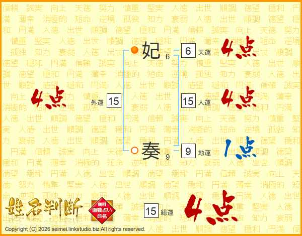 妃奏さんの総運は15画の4点!