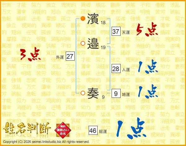 濱邉奏さんの総運は46画の1点!