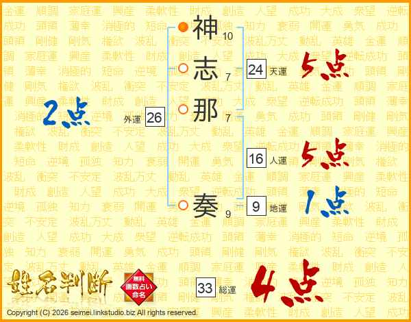 神志那奏さんの総運は33画の4点!
