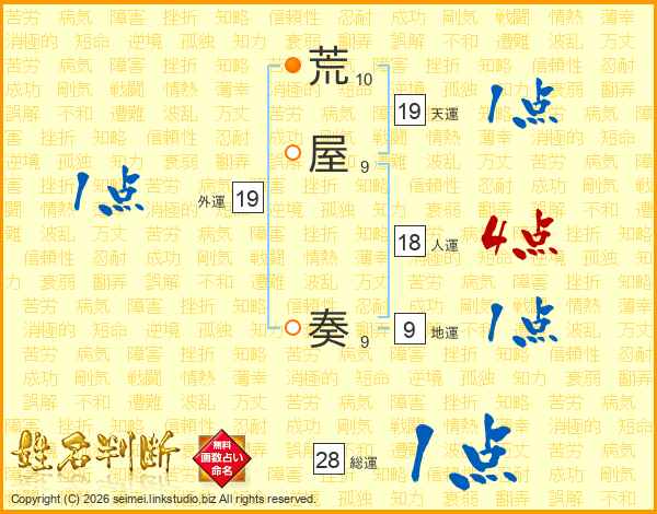 荒屋奏さんの総運は28画の1点!