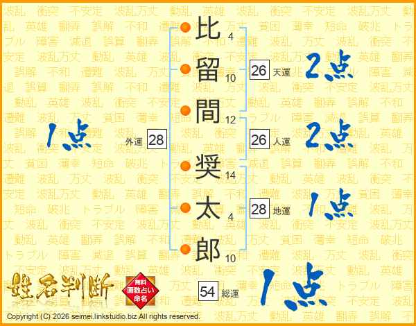 比留間奨太郎さんの人運は26画の2点!