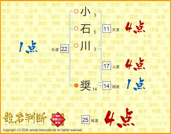 小石川奨さんの天運は11画の4点!