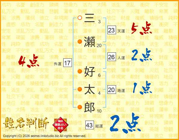三瀬好太郎さんの総運は43画の2点!