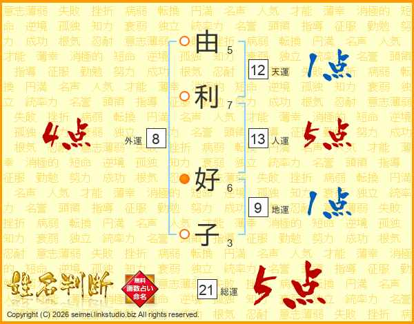由利好子さんの総運は21画の5点!