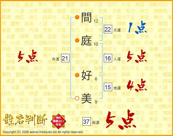間庭好美さんの総運は37画の5点!