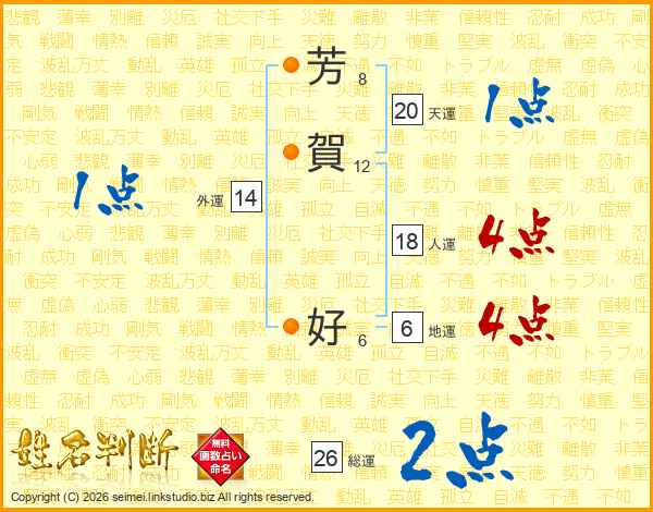 芳(8画)賀(12画) 好(6画)