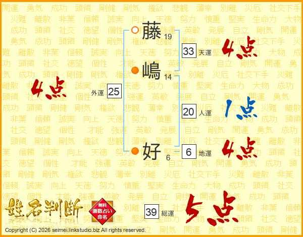 藤嶋好さんの総運は39画の5点!