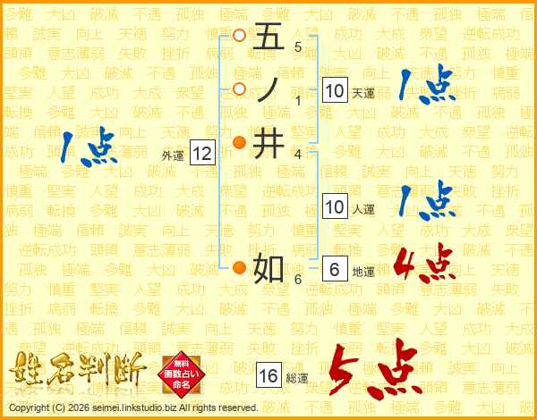 五ノ井如さんの総運は16画の5点!