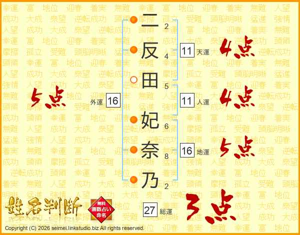 二反田妃奈乃さんの外運は16画の5点!