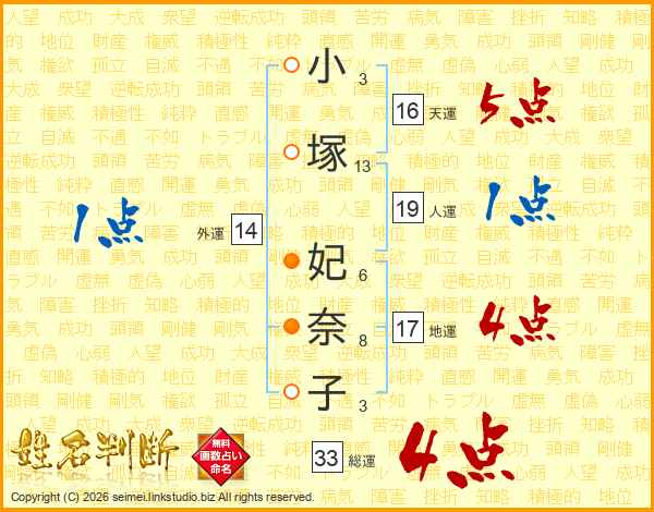 小塚妃奈子さんの総運は33画の4点!