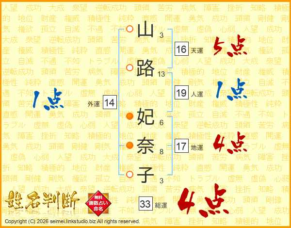 山路妃奈子さんの総運は33画の4点!