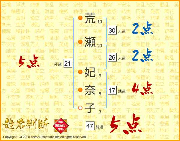 荒瀬妃奈子さんの総運は47画の5点!
