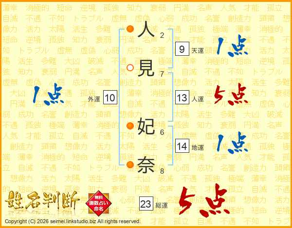 人見妃奈さんの総運は23画の5点!