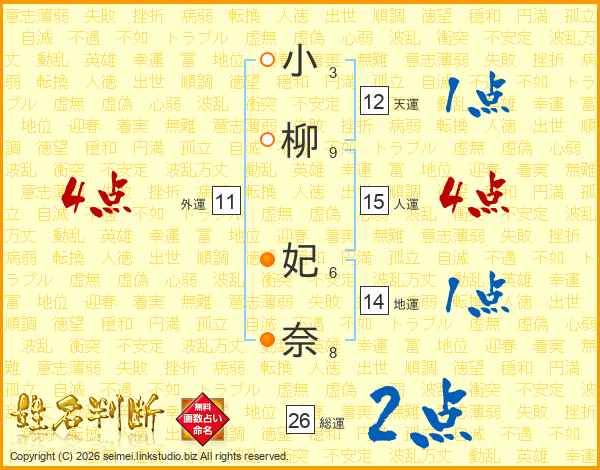 小柳妃奈さんの総運は26画の2点!