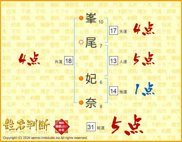 峯尾妃奈さんの総運は31画の5点!