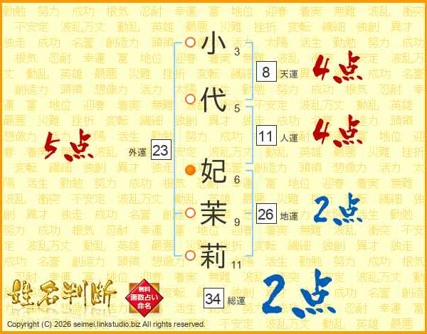 小代妃茉莉さんの外運は23画の5点!