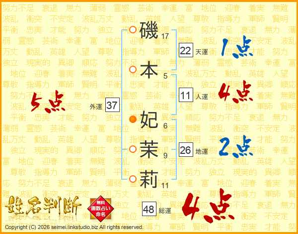 磯本妃茉莉さんの総運は48画の4点!