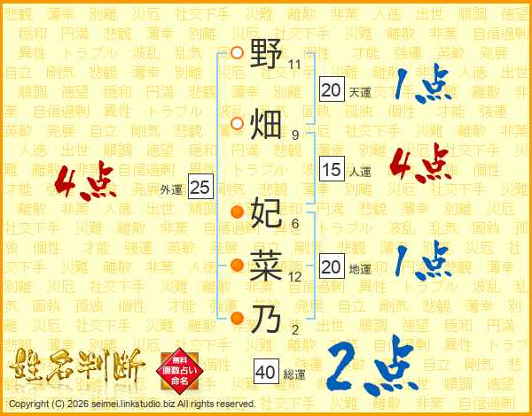 野畑妃菜乃さんの総運は40画の2点!