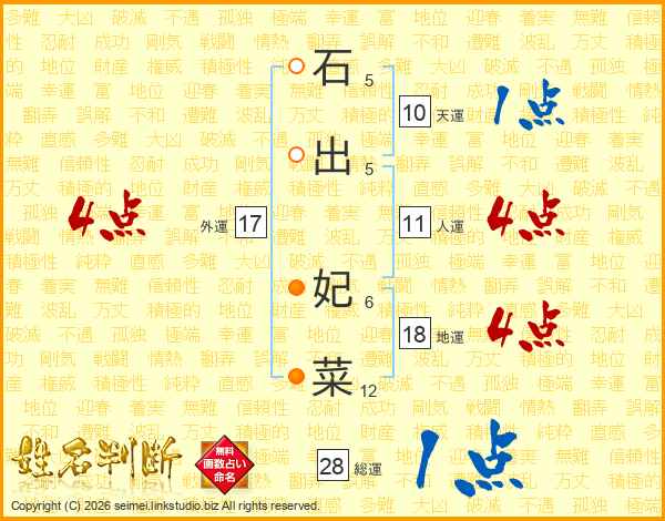 石出妃菜さんの外運は17画の4点!