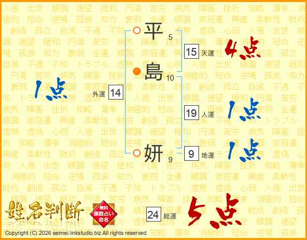 平島妍さんの総運は24画の5点!