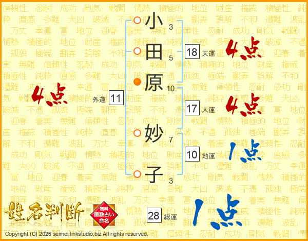小田原妙子さんの天運は18画の4点!