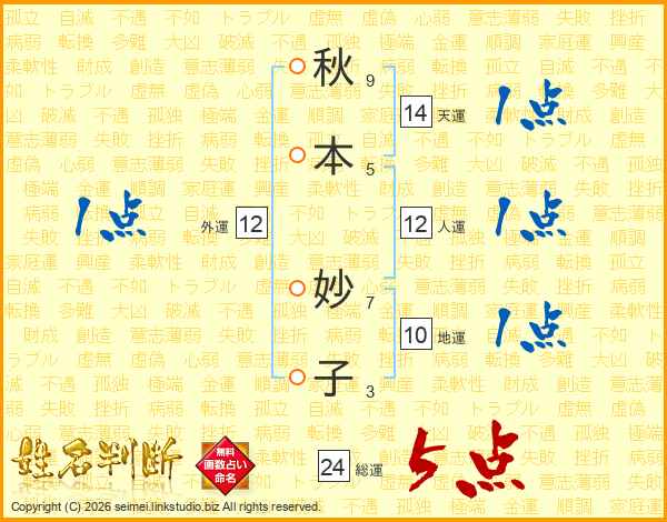 秋本妙子さんの総運は24画の5点!