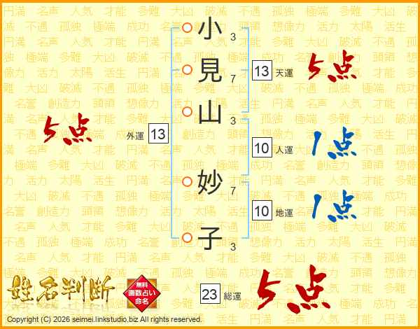 小見山妙子さんの総運は23画の5点!