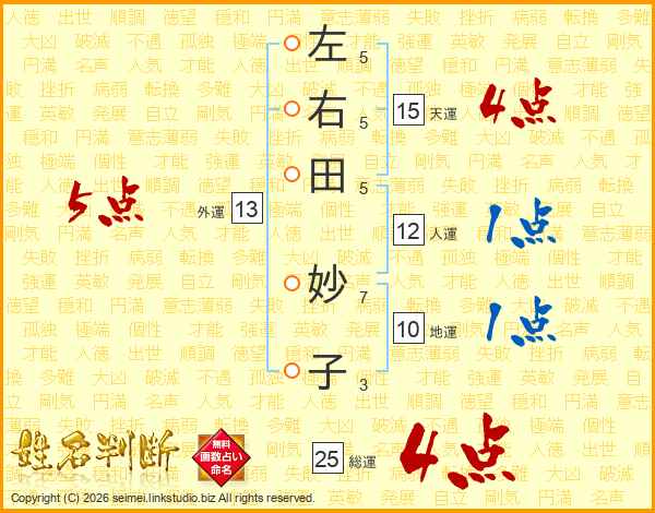 左右田妙子さんの総運は25画の4点!