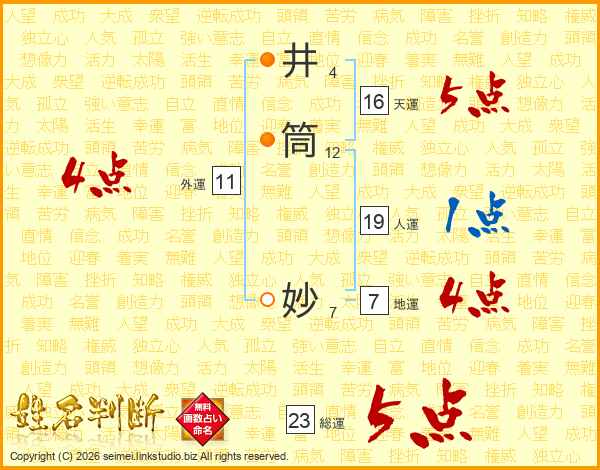 井筒妙さんの総運は23画の5点!