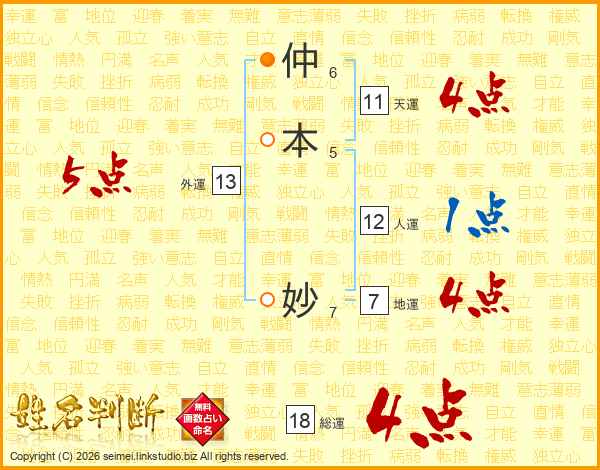 仲(6画)本(5画) 妙(7画)