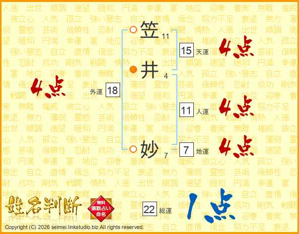 笠(11画)井(4画) 妙(7画)