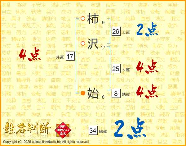 柿沢始さんの総運は34画の2点!