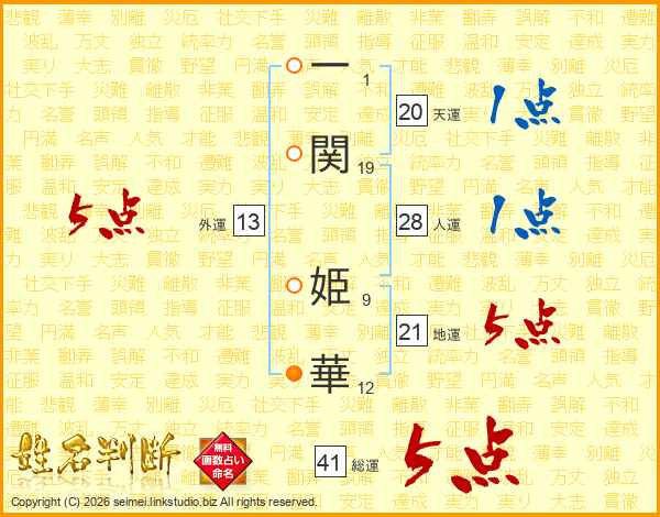 画数の奇数(○陽)と偶数(●陰)の配列で吉凶を占います。どちらかにかたよる名前は大凶名で避ける必要があります。画数の奇数偶数。
