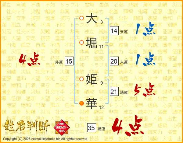 大堀姫華さんの総運は35画の4点!