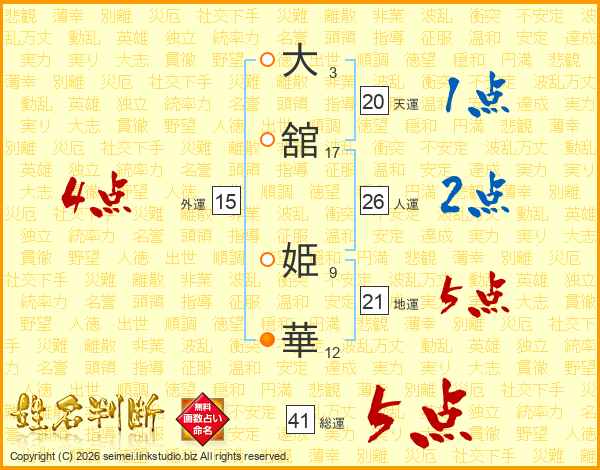 大舘姫華さんの総運は41画の5点!