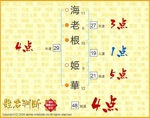 海老根姫華さんの外運は29画の4点!